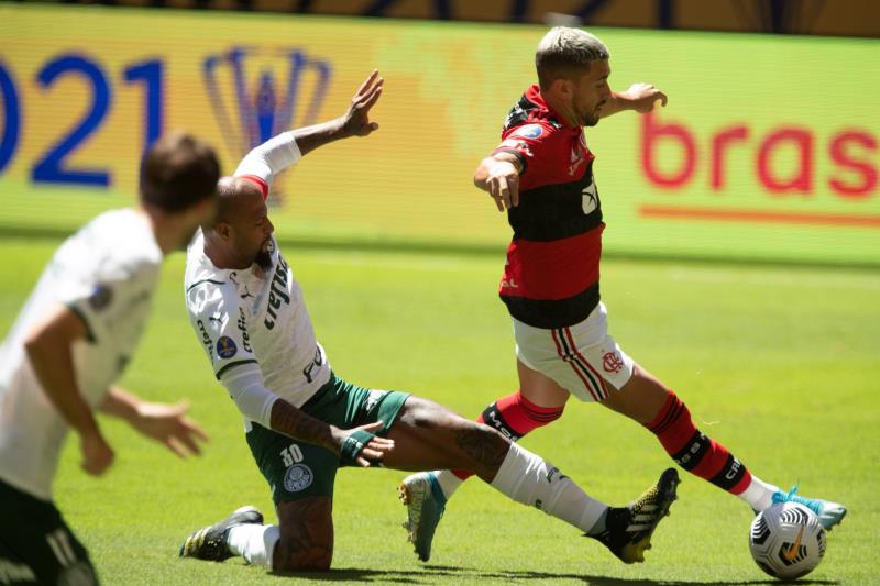 O primeiro tempo da decisão da Supercopa foi do nível que se espera de um encontro entre os campeões do Brasileirão e da Copa do Brasil. Flamengo e Palmeiras não pouparam em intensidade, belos lances, polêmicas e gols.